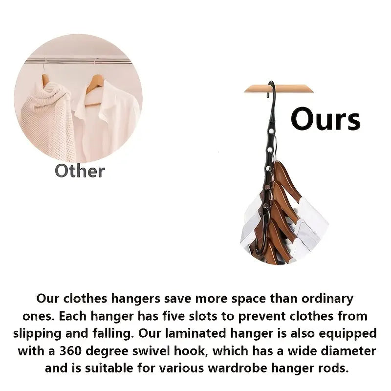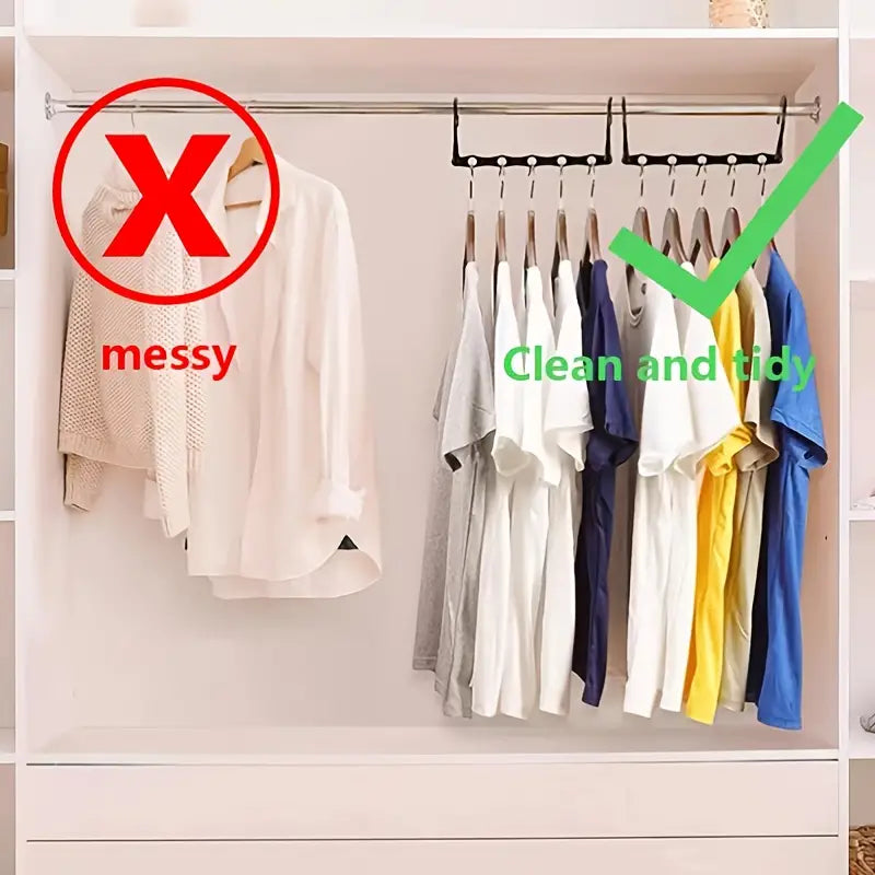 Say goodbye to cluttered closets and hello to a more organized lifestyle! The unique structure of the Black Magic Hanger allows you to hang clothes vertically, saving precious space for shoes, bags, or other accessories. Whether you're storing dresses, shirts, or jackets, these hangers can accommodate a variety of clothing items with ease.